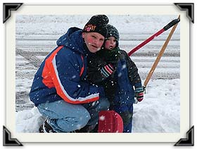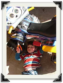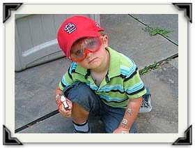 Aiden Hosing Down The Driveway Dawning His 40lb. Helmet” |
