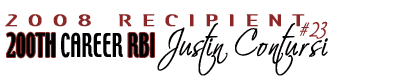 Back in 2007 Justin Contursi while playing for the Keegean Growlers was bestowed the nickname Roger Dorn due to his premadonna approach to his uniform and baseball bag (a.k.a. his Locker Room). He never showed up dressed in his uniform because it was always pressed and on a hanger. He also had the cleanest and largest bag on the team. he gladly took on the nickname and thought that would be the end of it. Then in 2008 Justin hit a milestone in his career as teammates became aware that he had achieved 200 career RBI's. He was presented with Roger Dorn Milestone Award and presented with his own Homeplate, An autographed baseball by Roger Dorn (Corbin Bernsen), and keys to his brand new Matchbox Hummer.